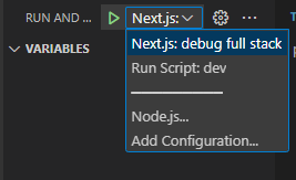 Next.js: debug full stack 선택 후 실행(왼쪽 초록 삼각형 클릭)