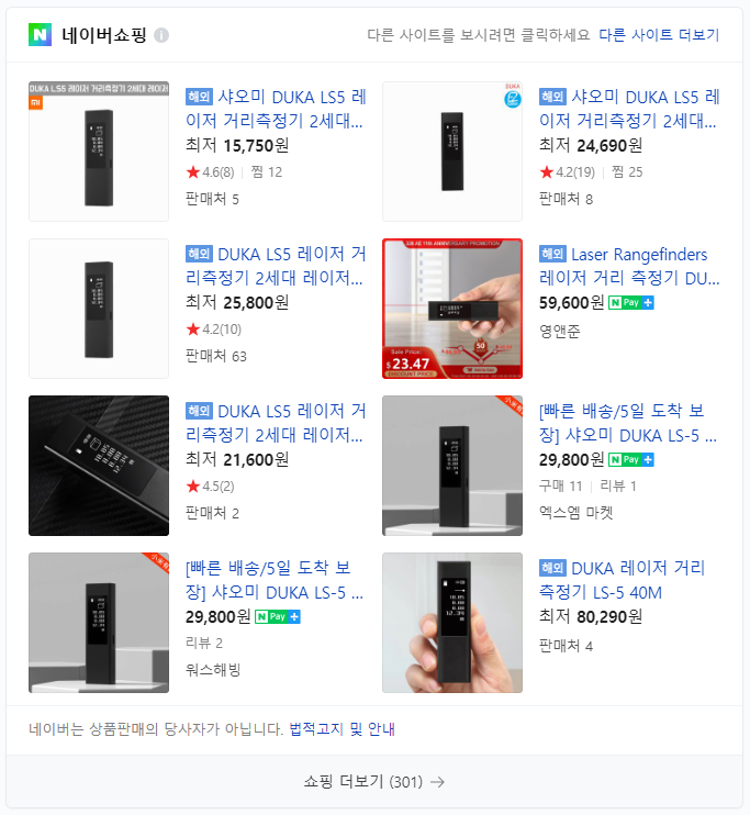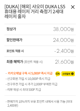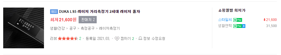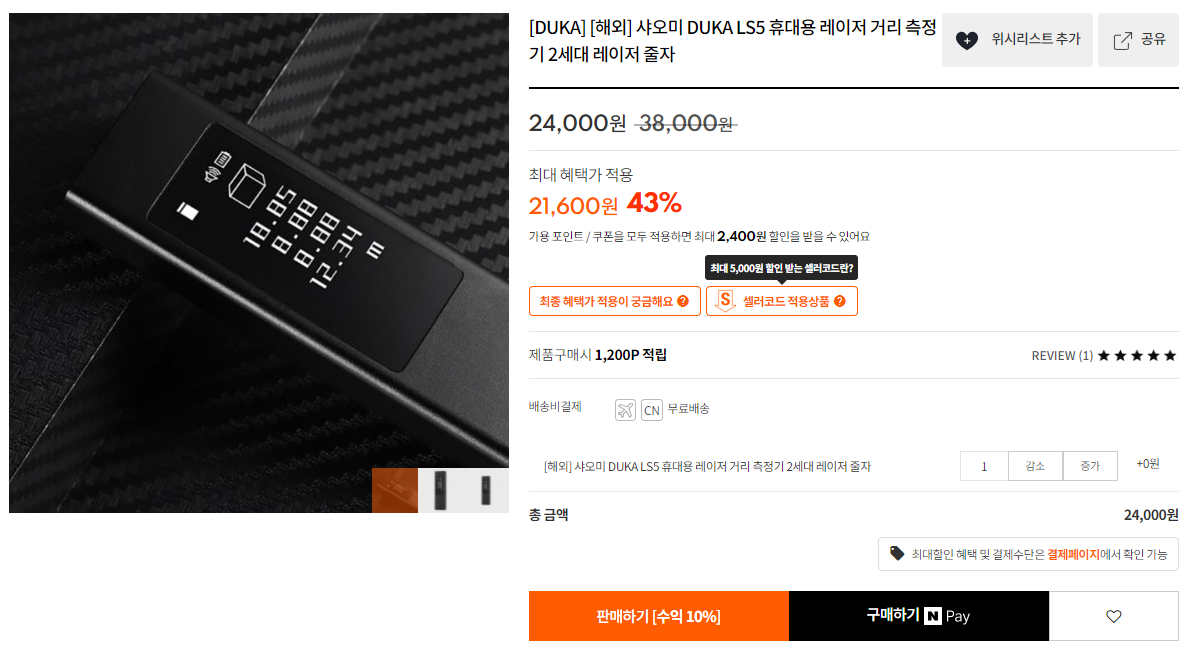 아참.. HOTO 레이저 거리 측정기도 살까 했는데 이 제품은 수평계가 안되고 거리 측정 오차가 좀 많아서 패스 했습니다.